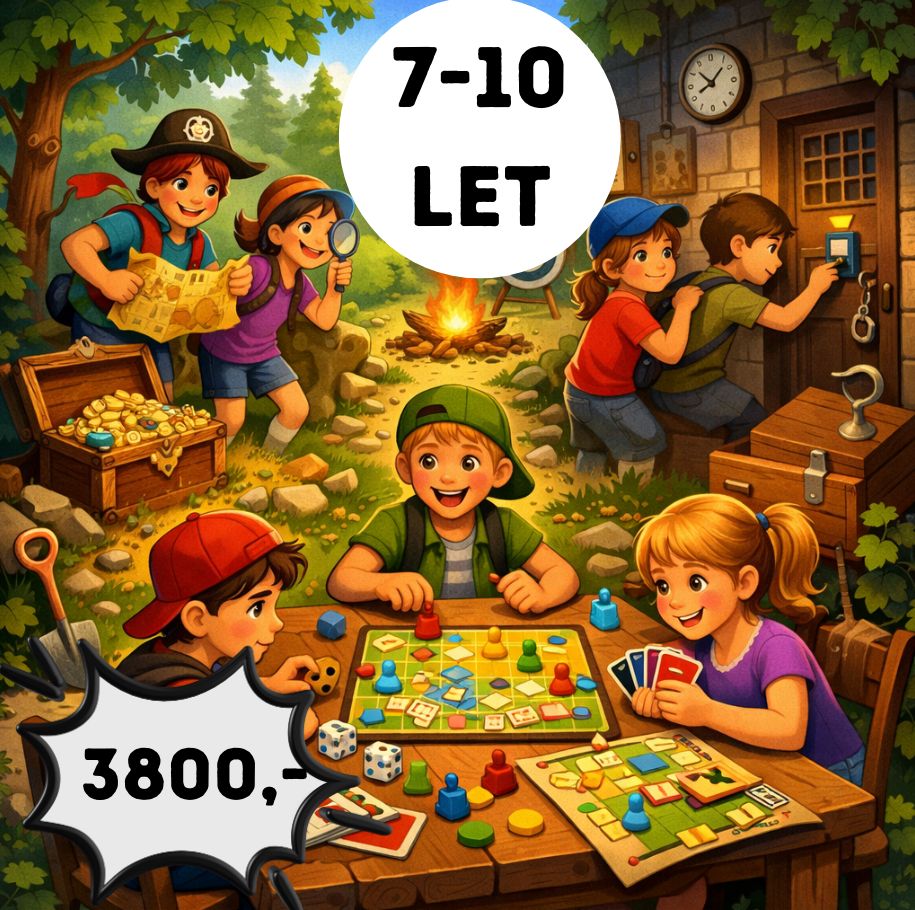 Týden plný deskovek, táborových her, únikovky či hledání pokladu. Tábor, kde se můžete stát hrdiny v deskové hře "naživo". Čekají nás zajímavé výlety a nadupaný program, při kterém se nebudete nudit.